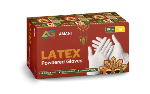 Guantes en polvo de látex desechables de grado médico "AMANI" de un solo uso, superficie lisa 5,0 gramos; Ambidiestro